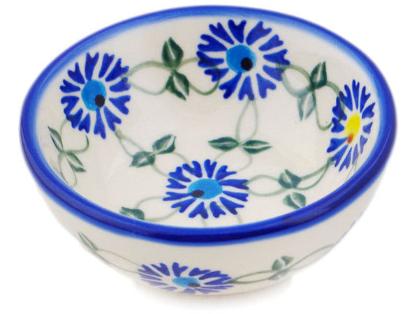 This Polish Pottery 3" Bowl - Blue Thistle Beauty is handmade and handpainted by the Ceramika Bona factory in Boleslawiec, Poland.