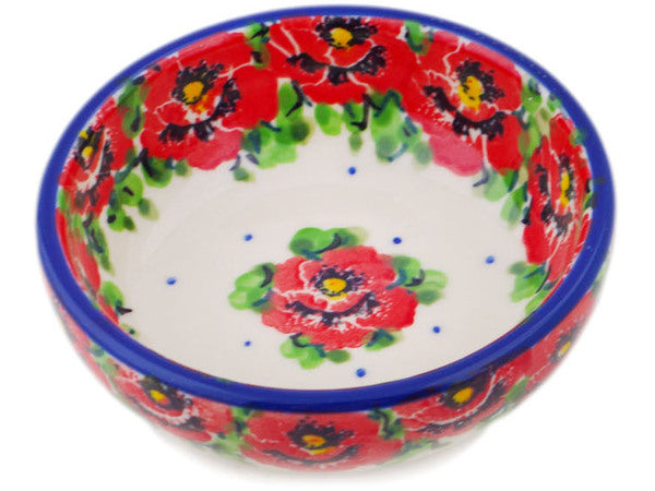 This Polish Pottery 3" Bowl - Crimson Camellia is handmade and handpainted by the Ceramika Artystyczna factory in Boleslawiec, Poland.