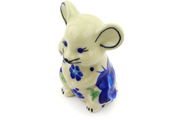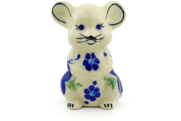 This Polish Pottery 3" Mouse Figurine - Bleu-Belle Fleur is handmade and handpainted by the Ceramika Bona factory in Boleslawiec, Poland.
