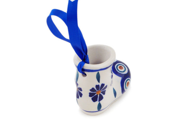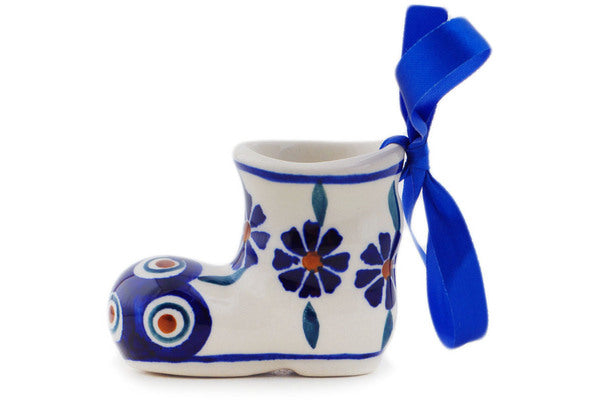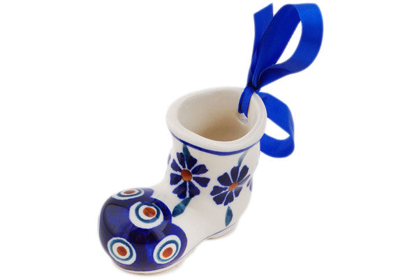 This Polish Pottery 3 oz Boot Ornament - Peacock is handmade and handpainted by the Manufaktura factory in Boleslawiec, Poland.