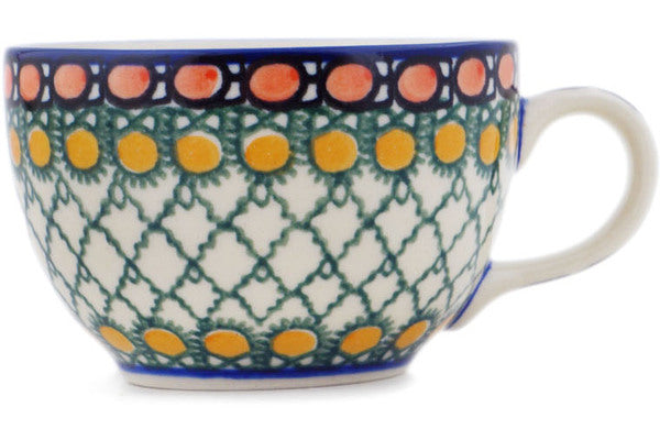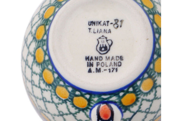 This Polish Pottery 3 oz Cup - Orange Tranquility is handmade and handpainted by the Ceramika Artystyczna factory in Boleslawiec, Poland.