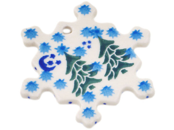 This Polish Pottery 3" Snowflake Pendant - Snowy Forest is handmade and handpainted by the Ceramika Artystyczna factory in Boleslawiec, Poland.