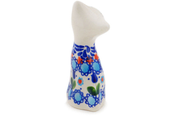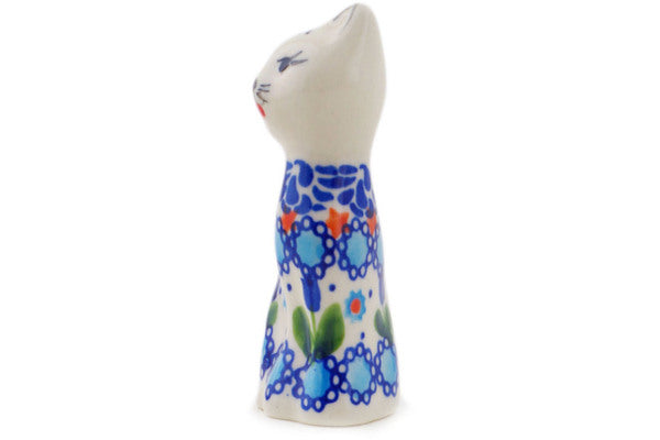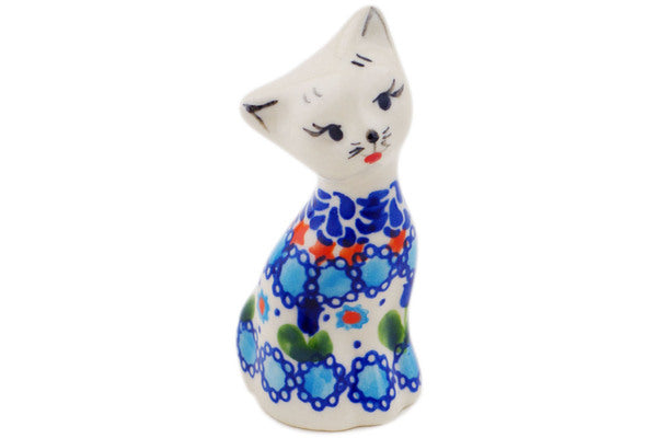 This Polish Pottery 4" Cat Figurine - Blue Tulip Garden is handmade and handpainted by the Ceramika Bona factory in Boleslawiec, Poland.
