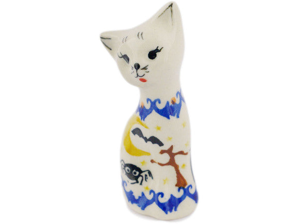 This Polish Pottery 4" Cat Figurine - Halloween Spooky Vibe is handmade and handpainted by the Ceramika Bona factory in Boleslawiec, Poland.