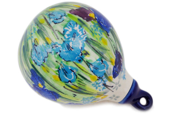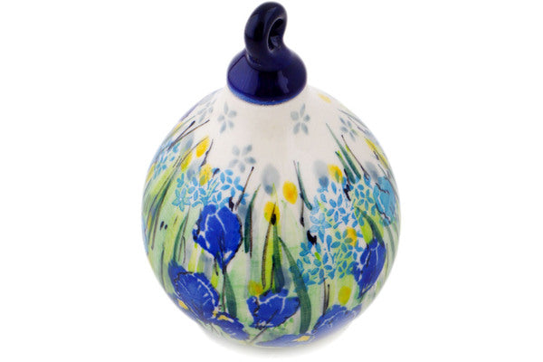 This Polish Pottery 4" Christmas Ball Ornament - Iris Field is handmade and handpainted by the Ceramika Artystyczna factory in Boleslawiec, Poland.