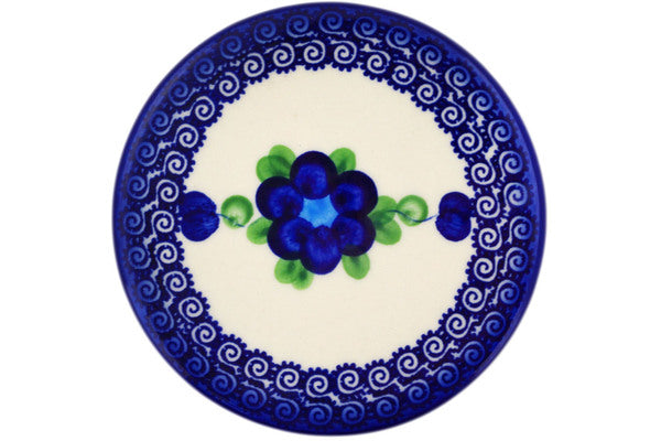 This Polish Pottery 4" Coaster - Bleu-Belle Fleur is handmade and handpainted by the Ceramika Bona factory in Boleslawiec, Poland.