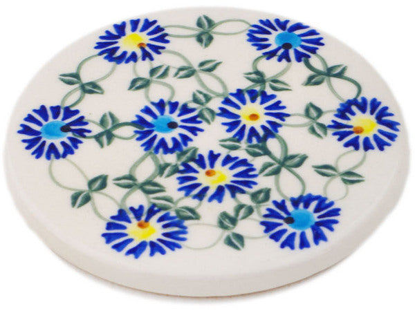 This Polish Pottery 4" Coaster - Blue Thistle Beauty is handmade and handpainted by the Ceramika Bona factory in Boleslawiec, Poland.