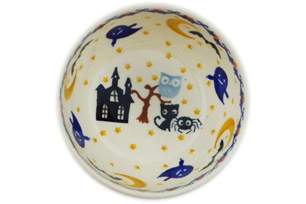 This Polish Pottery 4" Bowl - Halloween Spooky Vibe is handmade and handpainted by the Ceramika Bona factory in Boleslawiec, Poland.