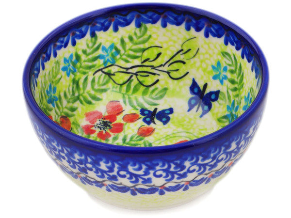 This Polish Pottery 4" Bowl - Metamorphosis is handmade and handpainted by the Ceramika Bona factory in Boleslawiec, Poland.