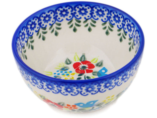 This Polish Pottery 4" Bowl - Ring Of Meadow Flowers is handmade and handpainted by the Ceramika Bona factory in Boleslawiec, Poland.