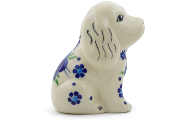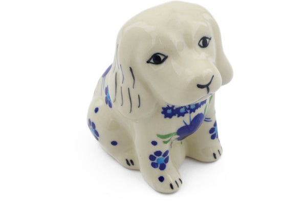 This Polish Pottery 4" Dog Figurine - Bleu-Belle Fleur is handmade and handpainted by the Ceramika Bona factory in Boleslawiec, Poland.