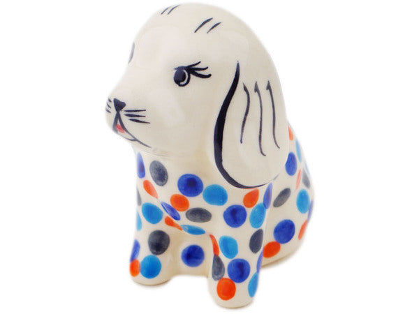 This Polish Pottery 4" Dog Figurine - Polka Dot Frenzy is handmade and handpainted by the Ceramika Bona factory in Boleslawiec, Poland.
