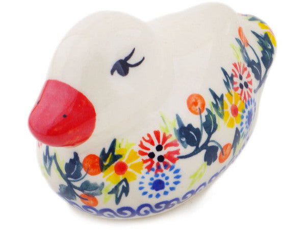 This Polish Pottery 4" Duck Figurine - Pastel Spring Wreath is handmade and handpainted by the Ceramika Bona factory in Boleslawiec, Poland.
