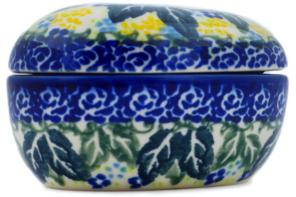 This Polish Pottery 4" Heart Shaped Jar - Floral Fantasy is handmade and handpainted by the Ceramika Nina factory in Boleslawiec, Poland.