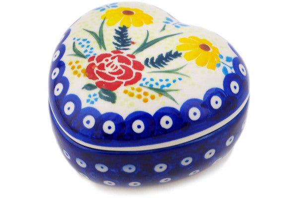 This Polish Pottery 4" Heart Shaped Jar - Summer's Garden is handmade and handpainted by the Ceramika Bona factory in Boleslawiec, Poland.