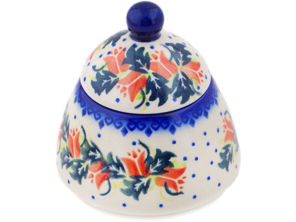 This Polish Pottery 4" Jar with Lid - California Poppies is handmade and handpainted by the Ceramika Bona factory in Boleslawiec, Poland.