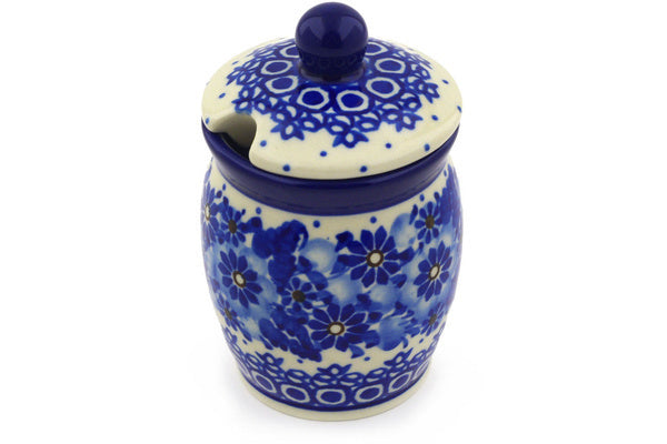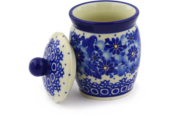 This Polish Pottery 4" Jar with Lid with Opening - Blue Poppy Wreath is handmade and handpainted by the Ceramika Artystyczna factory in Boleslawiec, Poland.