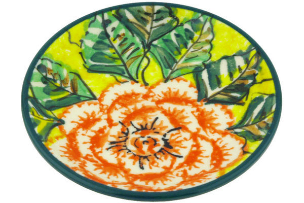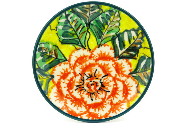 This Polish Pottery 4" Plate - Orange Peonies is handmade and handpainted by the Ceramika Artystyczna factory in Boleslawiec, Poland.