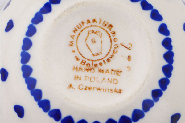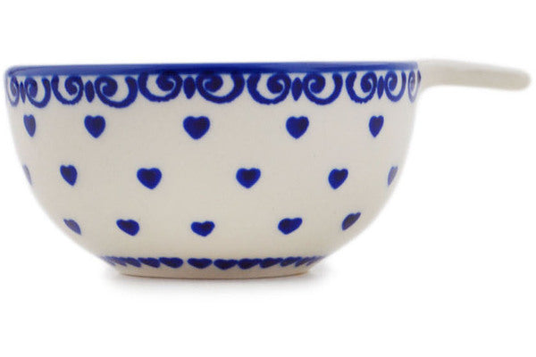 This Polish Pottery 4 oz Measuring Cup - Sea Of Hearts is handmade and handpainted by the Manufaktura factory in Boleslawiec, Poland.