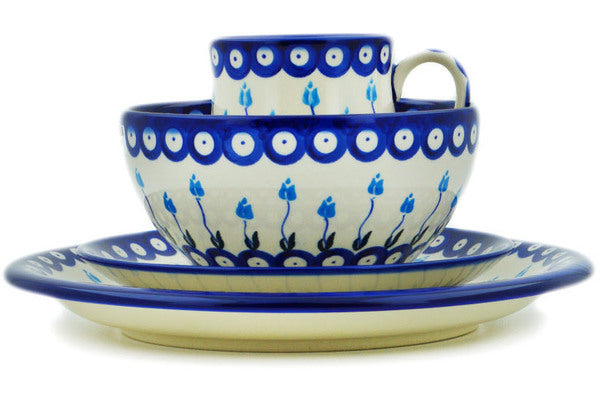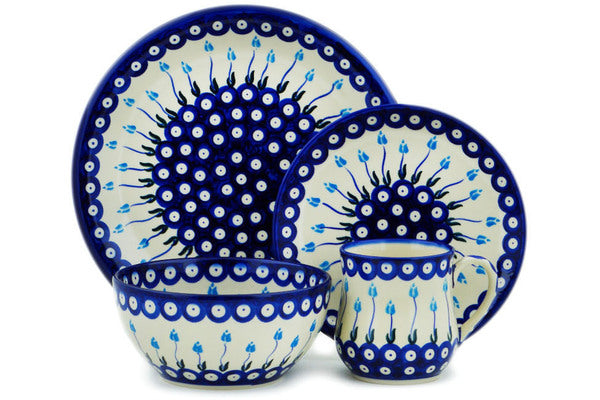 This Polish Pottery 10" Place Setting - Peacock Tulip Garden is handmade and handpainted by the Ceramika Bona factory in Boleslawiec, Poland.