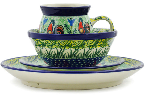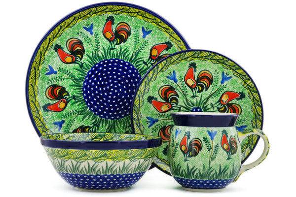 This Polish Pottery 10" Place Setting - Rooster Parade is handmade and handpainted by the Ceramika Artystyczna factory in Boleslawiec, Poland.