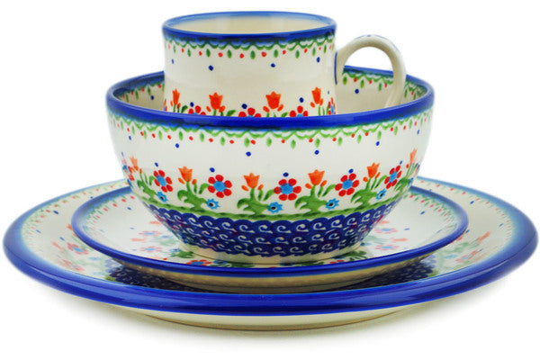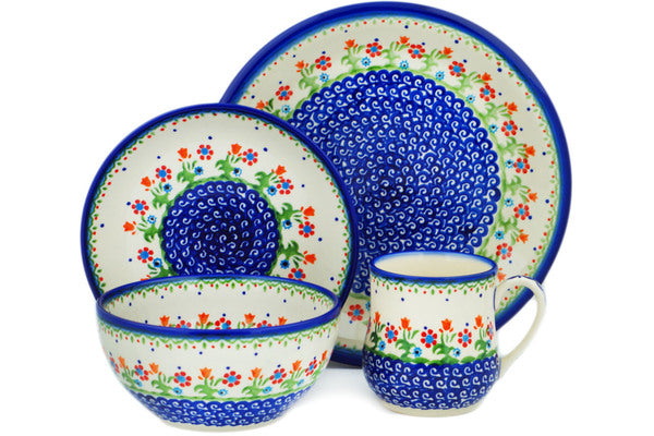This Polish Pottery 10" Place Setting - Spring Flowers is handmade and handpainted by the Ceramika Bona factory in Boleslawiec, Poland.
