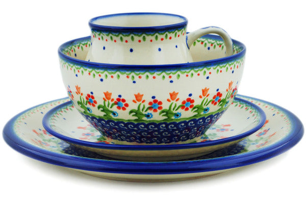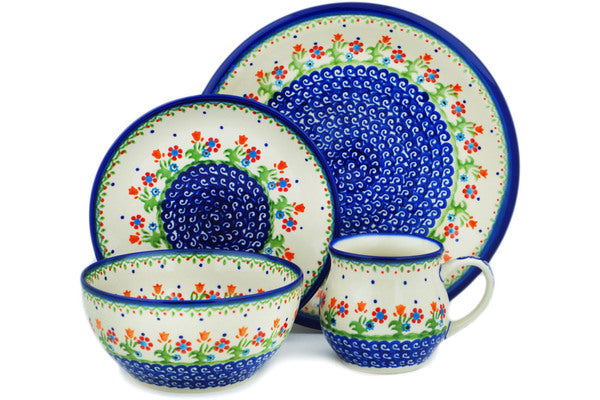 This Polish Pottery 10" Place Setting - Spring Flowers is handmade and handpainted by the Ceramika Bona factory in Boleslawiec, Poland.