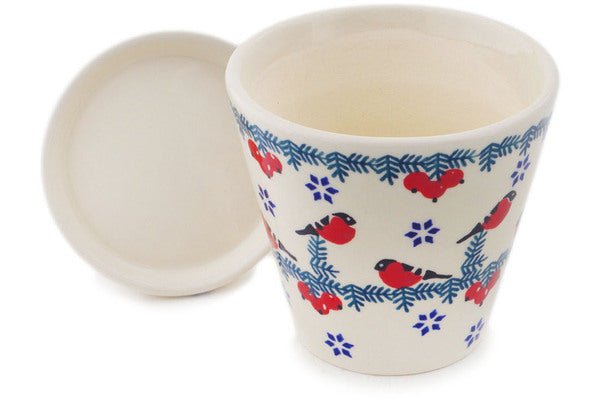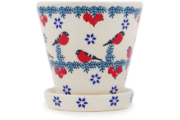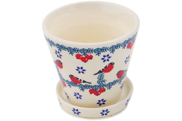 This Polish Pottery 4" Planter - Winter Bullfinch is handmade and handpainted by the Manufaktura factory in Boleslawiec, Poland.