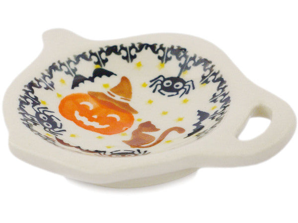 This Polish Pottery 4" Tea Bag or Lemon Plate - Halloween Spooky Pumpkin is handmade and handpainted by the Ceramika Bona factory in Boleslawiec, Poland.