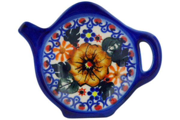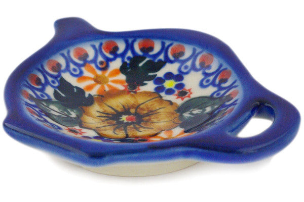 This Polish Pottery 4" Tea Bag or Lemon Plate - Mauve Poppies is handmade and handpainted by the Ceramika Bona factory in Boleslawiec, Poland.