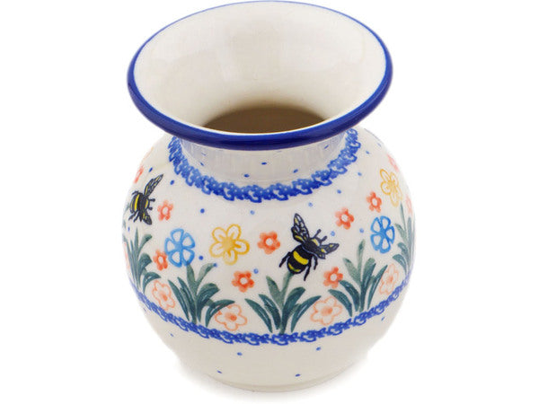 This Polish Pottery 4" Vase - Spring Bee is handmade and handpainted by the Ceramika Artystyczna factory in Boleslawiec, Poland.