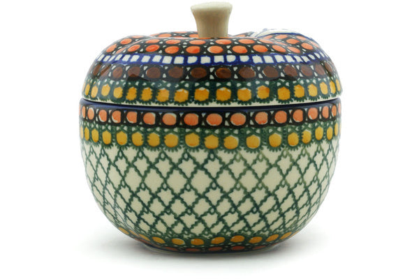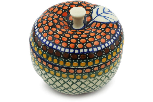This Polish Pottery 5" Apple Shaped Jar - Orange Tranquility is handmade and handpainted by the Ceramika Artystyczna factory in Boleslawiec, Poland.