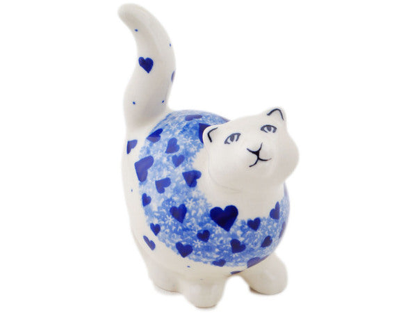 This Polish Pottery 5" Cat Figurine - Cobalt Love is handmade and handpainted by the Ceramika Artystyczna factory in Boleslawiec, Poland.