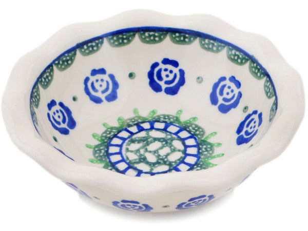 This Polish Pottery 5" Bowl - Blue Rose Patch is handmade and handpainted by the Ceramika Artystyczna factory in Boleslawiec, Poland.