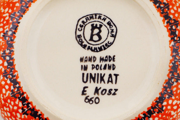 This Polish Pottery 5" Bowl - Halloween Spooky Pumpkin is handmade and handpainted by the Ceramika Bona factory in Boleslawiec, Poland.