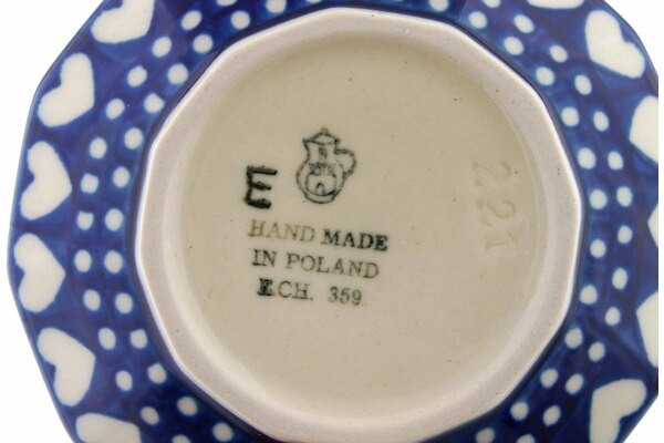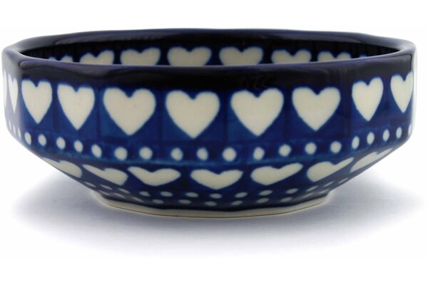 This Polish Pottery 5" Bowl - Heart To Heart is handmade and handpainted by the Ceramika Artystyczna factory in Boleslawiec, Poland.
