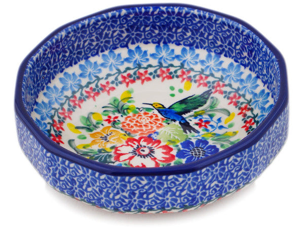 This Polish Pottery 5" Bowl - Hummingbird Meadow is handmade and handpainted by the Ceramika Artystyczna factory in Boleslawiec, Poland.