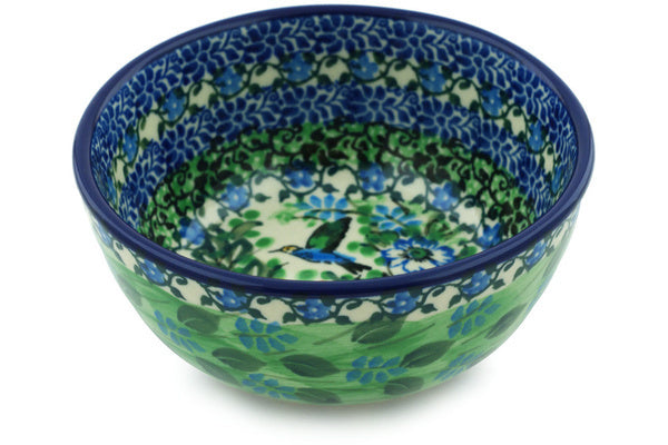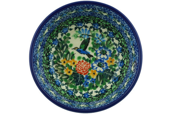 This Polish Pottery 5" Bowl - Hummingbird Meadow is handmade and handpainted by the Ceramika Artystyczna factory in Boleslawiec, Poland.