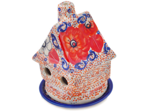 This Polish Pottery 5" House Shaped Candle Holder - Poppy Passion is handmade and handpainted by the Ceramika Bona factory in Boleslawiec, Poland.