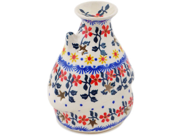 This Polish Pottery 5" House Shaped Candle Holder - Red Sunflower is handmade and handpainted by the Ceramika Bona factory in Boleslawiec, Poland.
