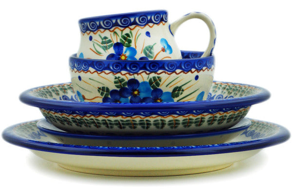 This Polish Pottery 10" Place Setting - Blue Pansy is handmade and handpainted by the Ceramika Bona factory in Boleslawiec, Poland.