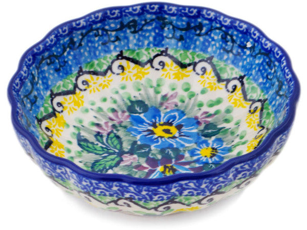 This Polish Pottery 5" Scalloped Fluted Bowl - Summer Garden is handmade and handpainted by the Ceramika Artystyczna factory in Boleslawiec, Poland.