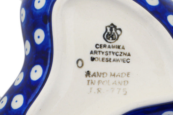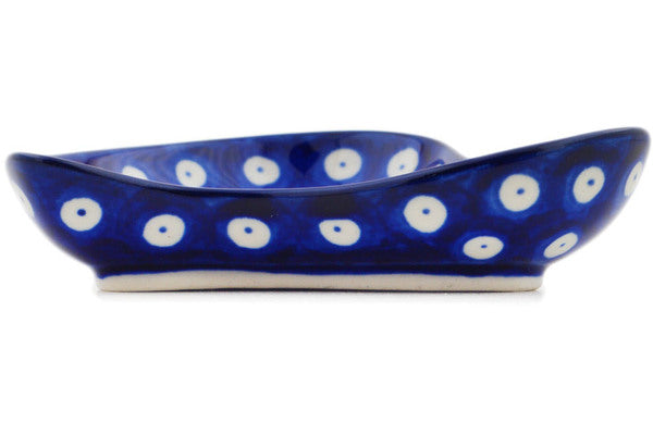 This Polish Pottery 5" Spoon Rest - Bleeding Heart Peacock is handmade and handpainted by the Ceramika Artystyczna factory in Boleslawiec, Poland.