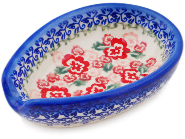 This Polish Pottery 5" Spoon Rest - Fluctuating Pansy's is handmade and handpainted by the Ceramika Bona factory in Boleslawiec, Poland.