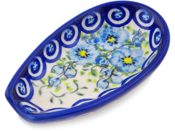 This Polish Pottery 5" Spoon Rest - Gorgeous Morning Glory is handmade and handpainted by the Ceramika Bona factory in Boleslawiec, Poland.