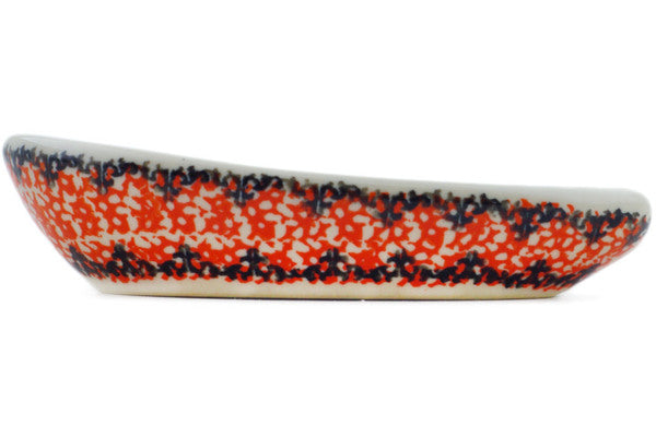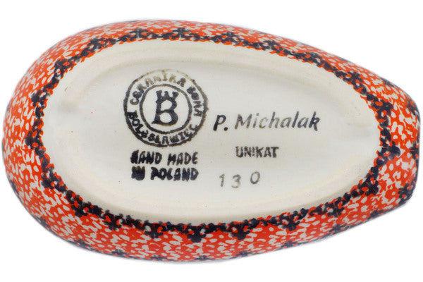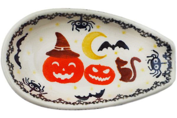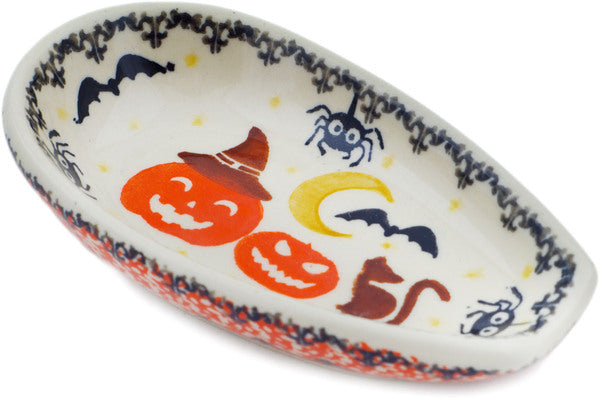 This Polish Pottery 5" Spoon Rest - Halloween Spooky Pumpkin is handmade and handpainted by the Ceramika Bona factory in Boleslawiec, Poland.
