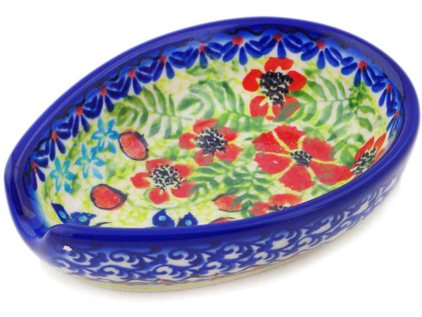 This Polish Pottery 5" Spoon Rest - Metamorphosis is handmade and handpainted by the Ceramika Bona factory in Boleslawiec, Poland.