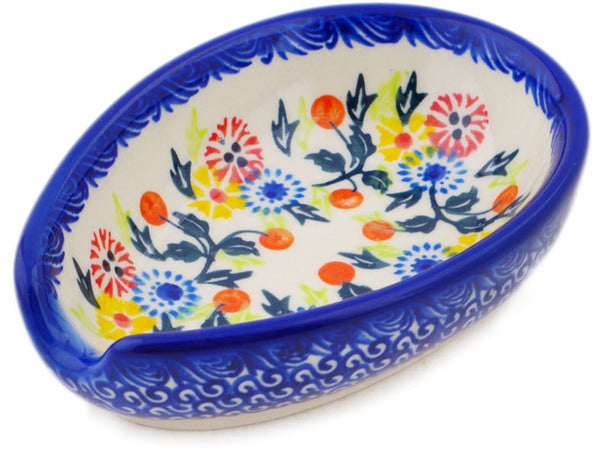 This Polish Pottery 5" Spoon Rest - Pastel Spring Wreath is handmade and handpainted by the Ceramika Bona factory in Boleslawiec, Poland.