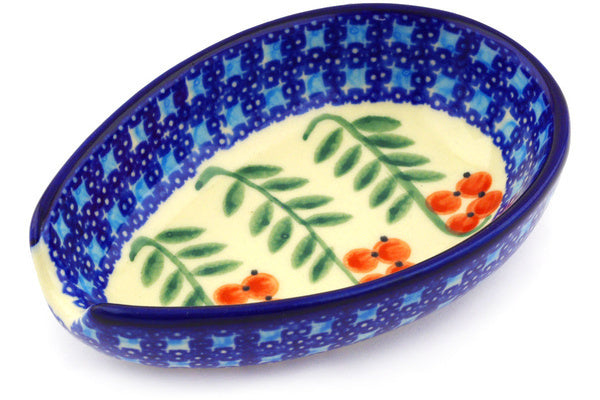 This Polish Pottery 5" Spoon Rest - Red Berries is handmade and handpainted by the Ceramika Bona factory in Boleslawiec, Poland.