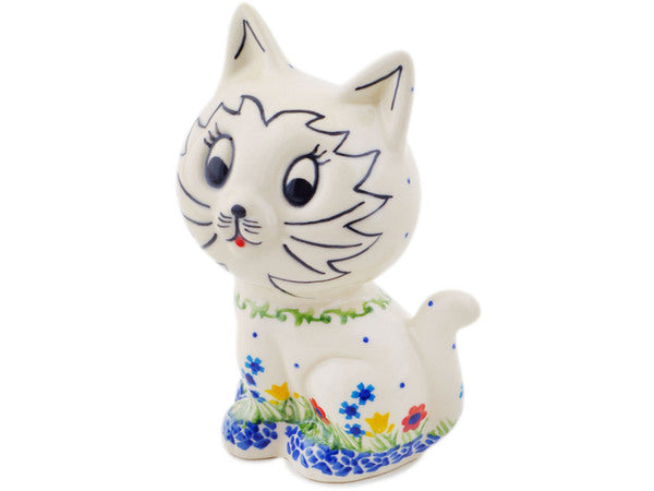 This Polish Pottery 6" Cat Figurine - Primary Spring is handmade and handpainted by the Ceramika Bona factory in Boleslawiec, Poland.